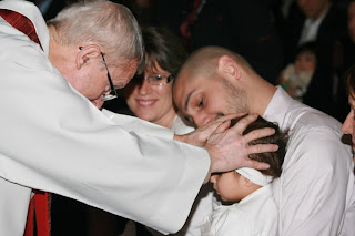 Et voilà ça y est, le grand moment est arrivé. Tout le monde a pris place dans l'église, et la cérémonie commence avec le prêtre. Maman a lu un petit texte, ainsi qu'une prière.